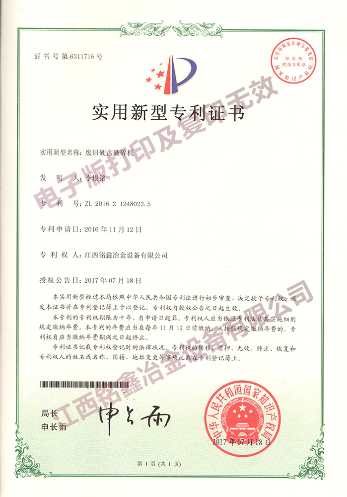 廢舊電路板干式回收成套設備- ZL20150779760.7
